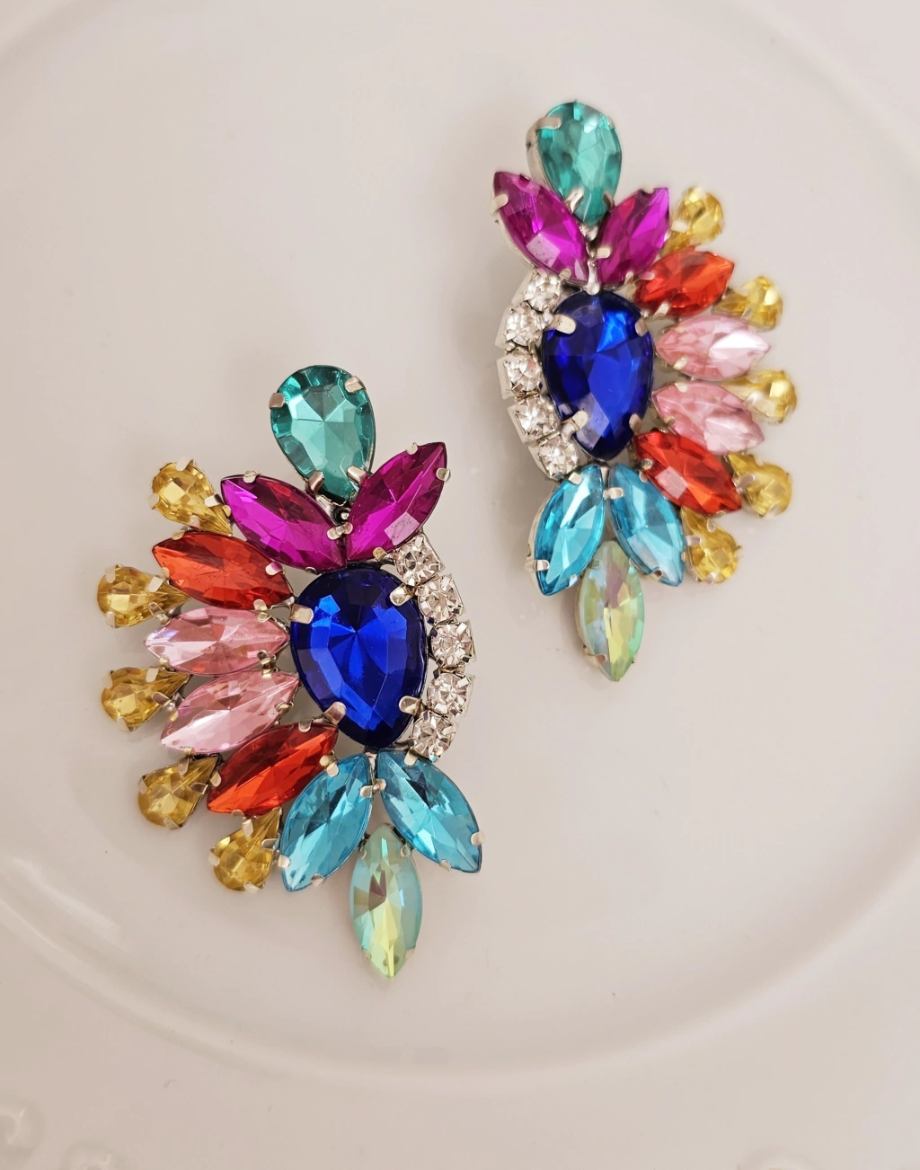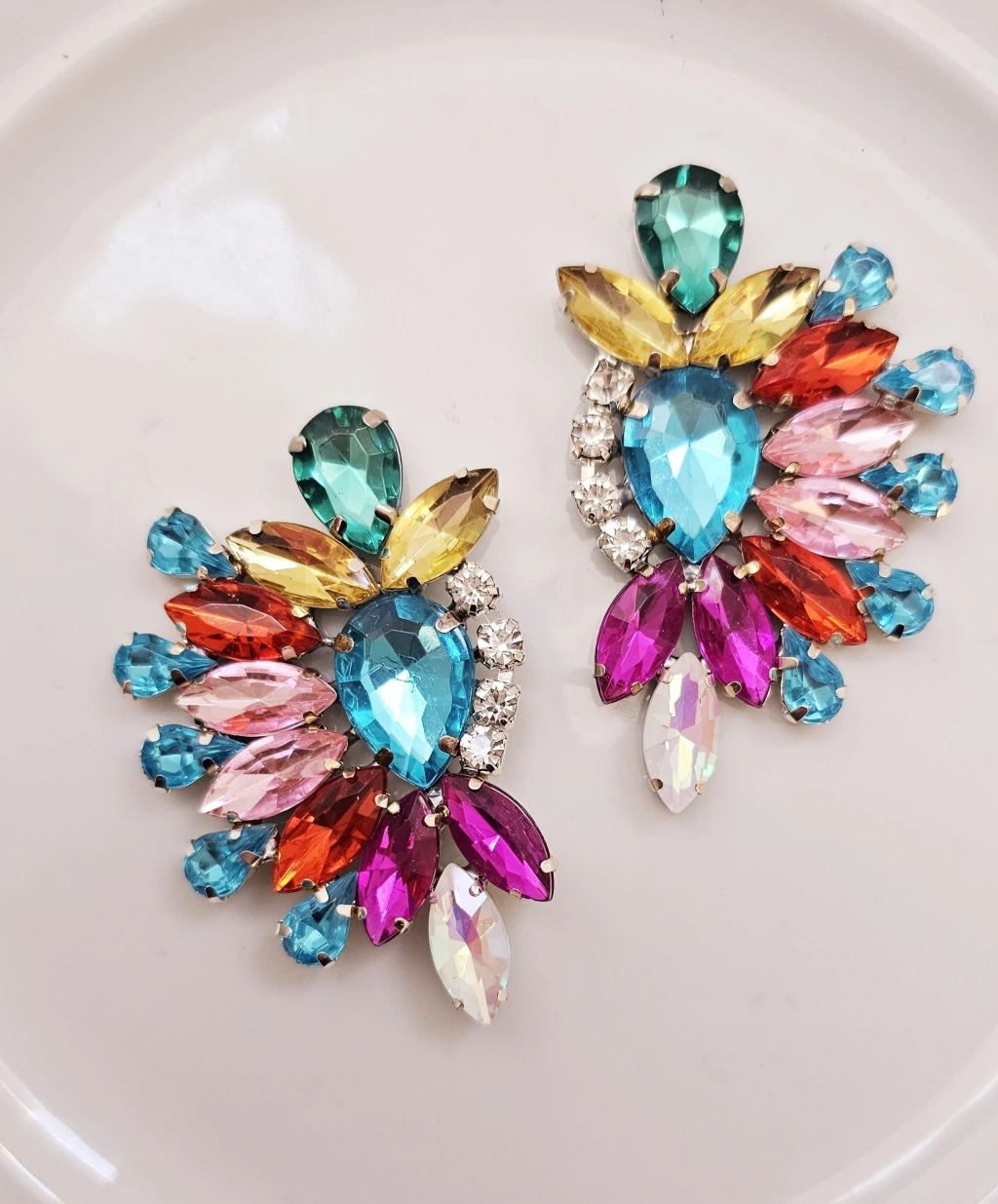 Aros Gems Peacock es el accesorio perfecto para iluminar tu rostro, complementar tu makeup pero sobre todo darlo color a tu total look.